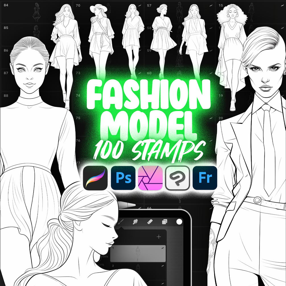 100 Procreate Top Fashion Models Stamp Brushes Collection